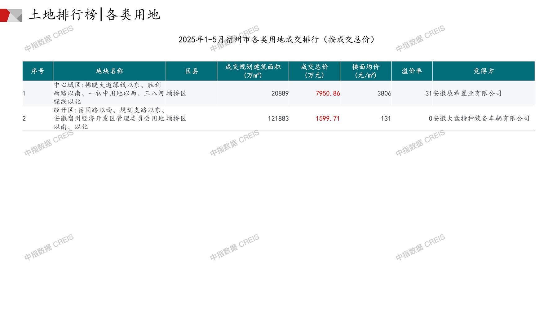 宿州土地市场月报2025年05月