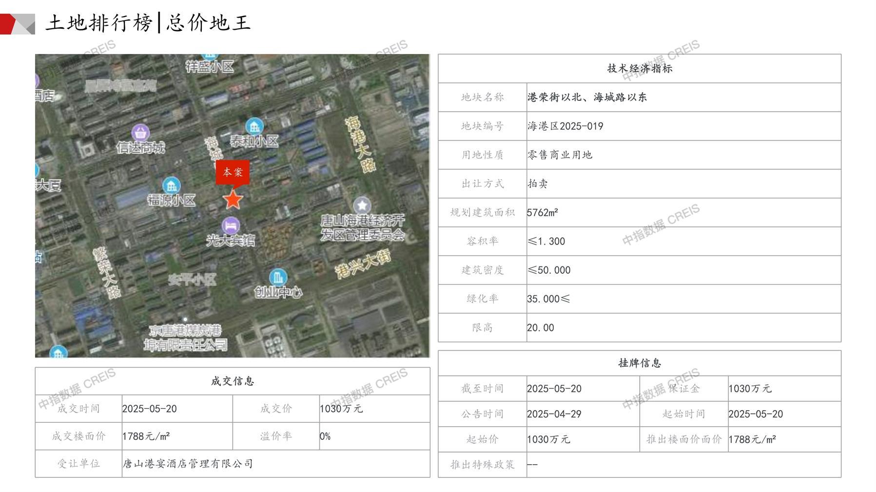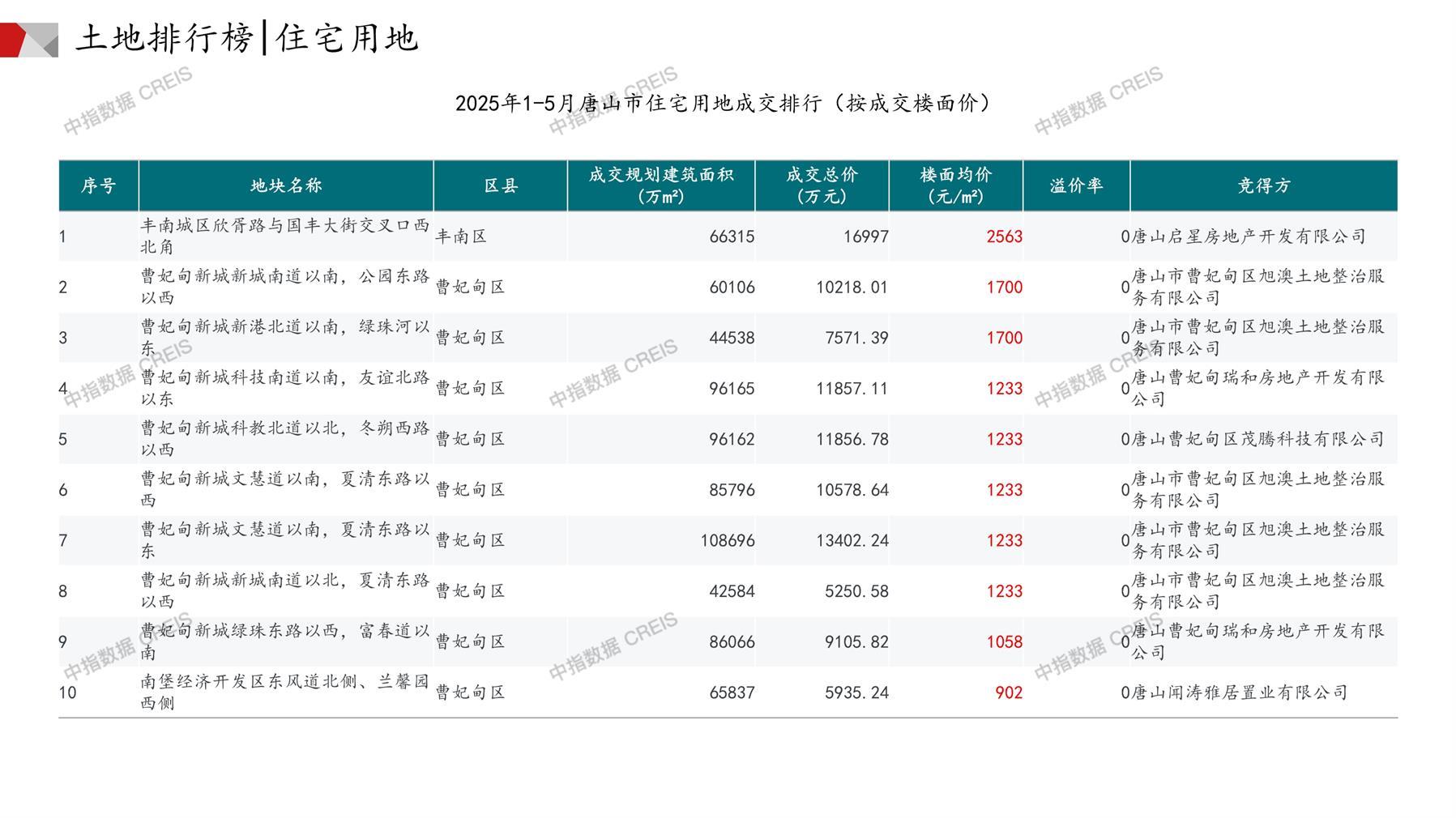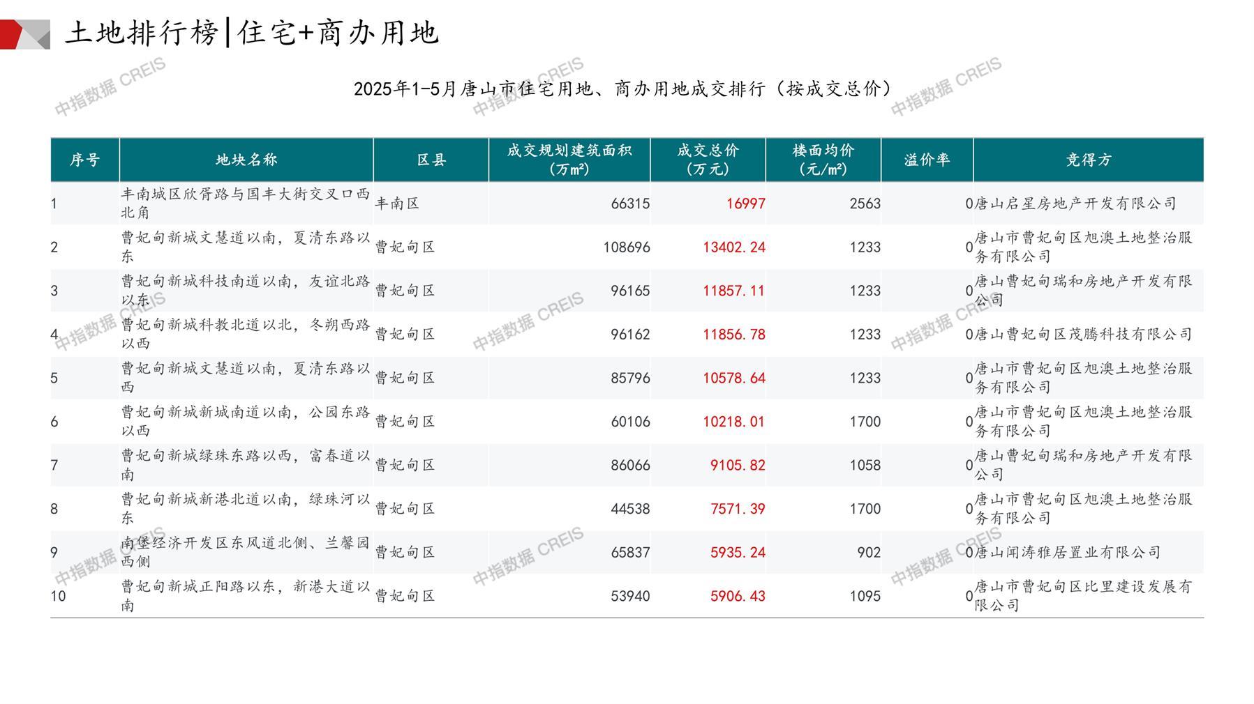 唐山土地市场月报2025年05月