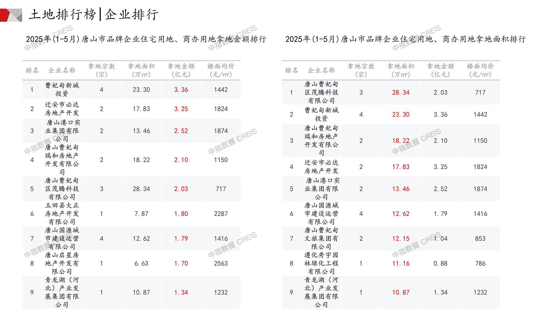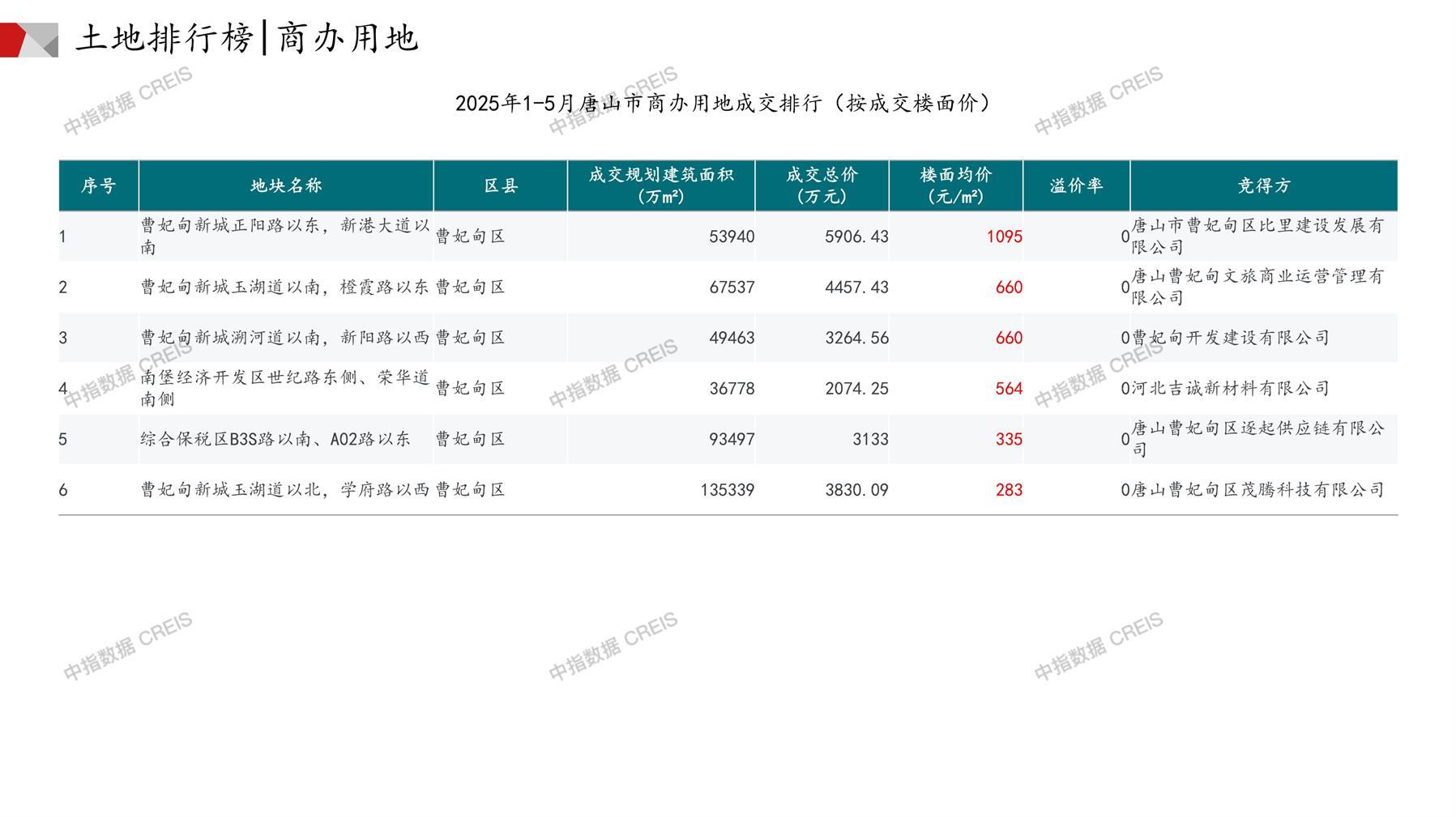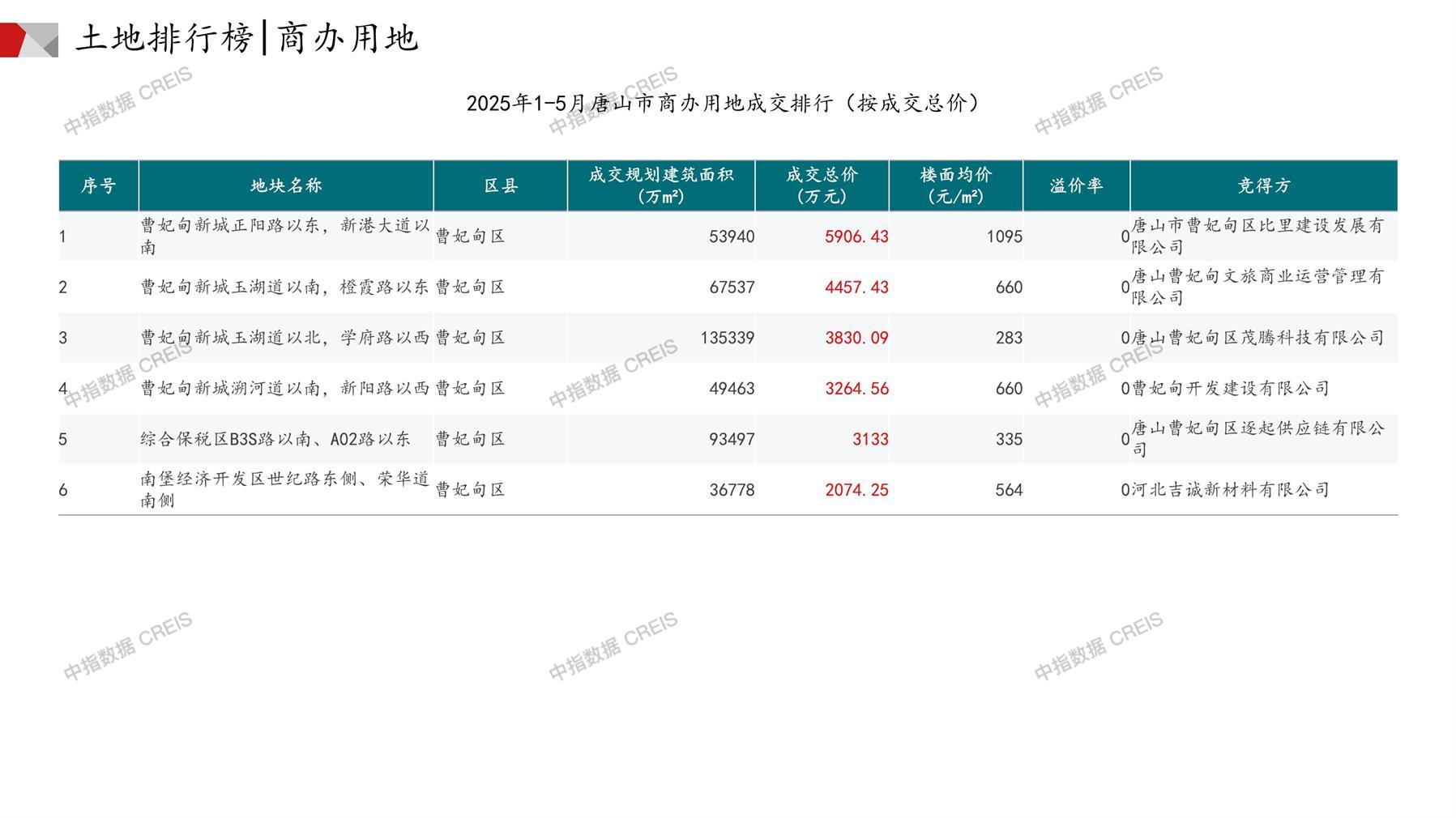 唐山土地市场月报2025年05月