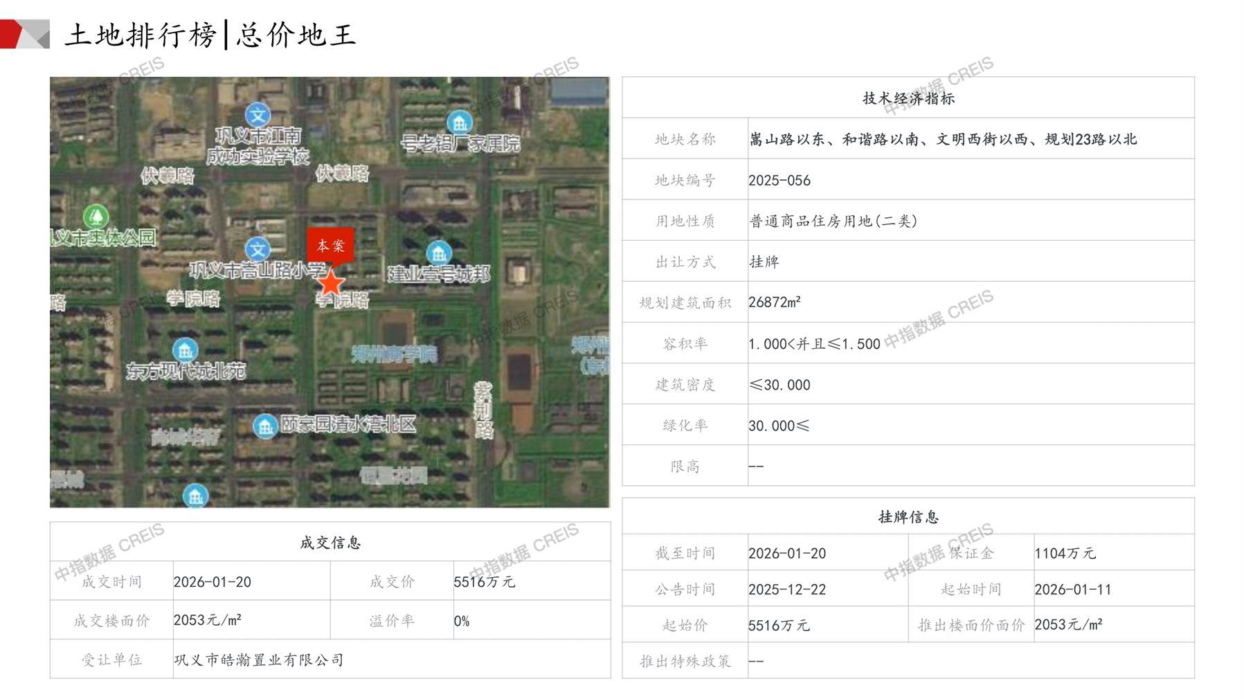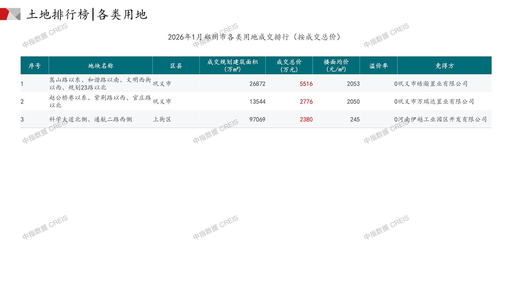 郑州土地市场月报2026年01月-快报