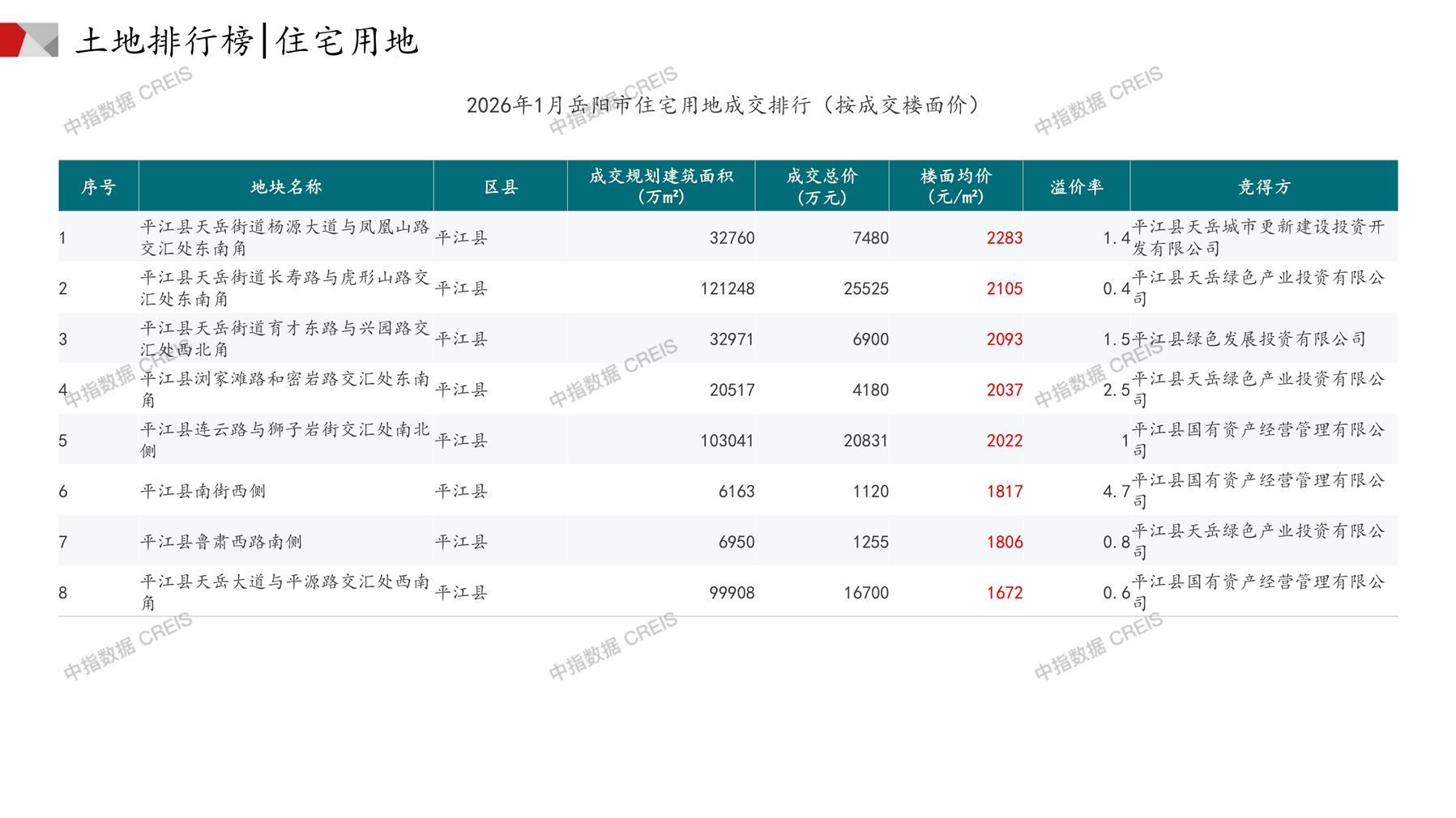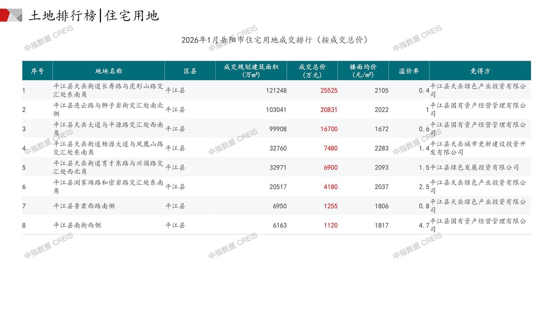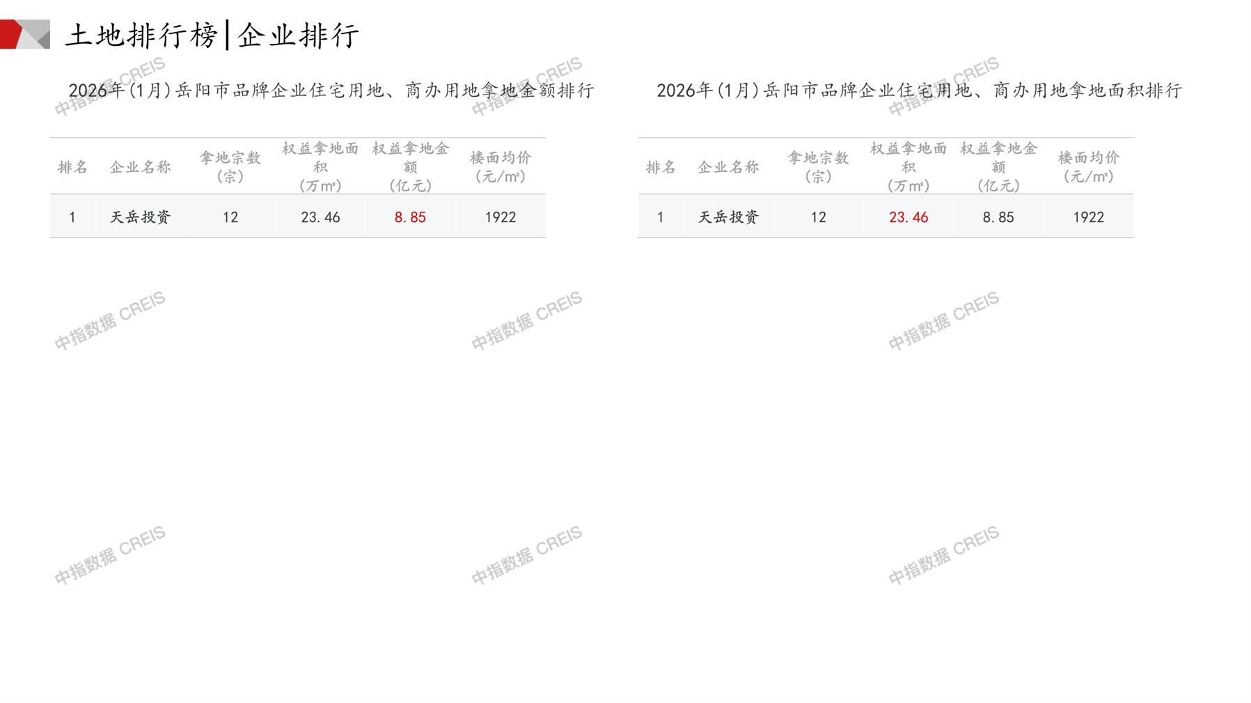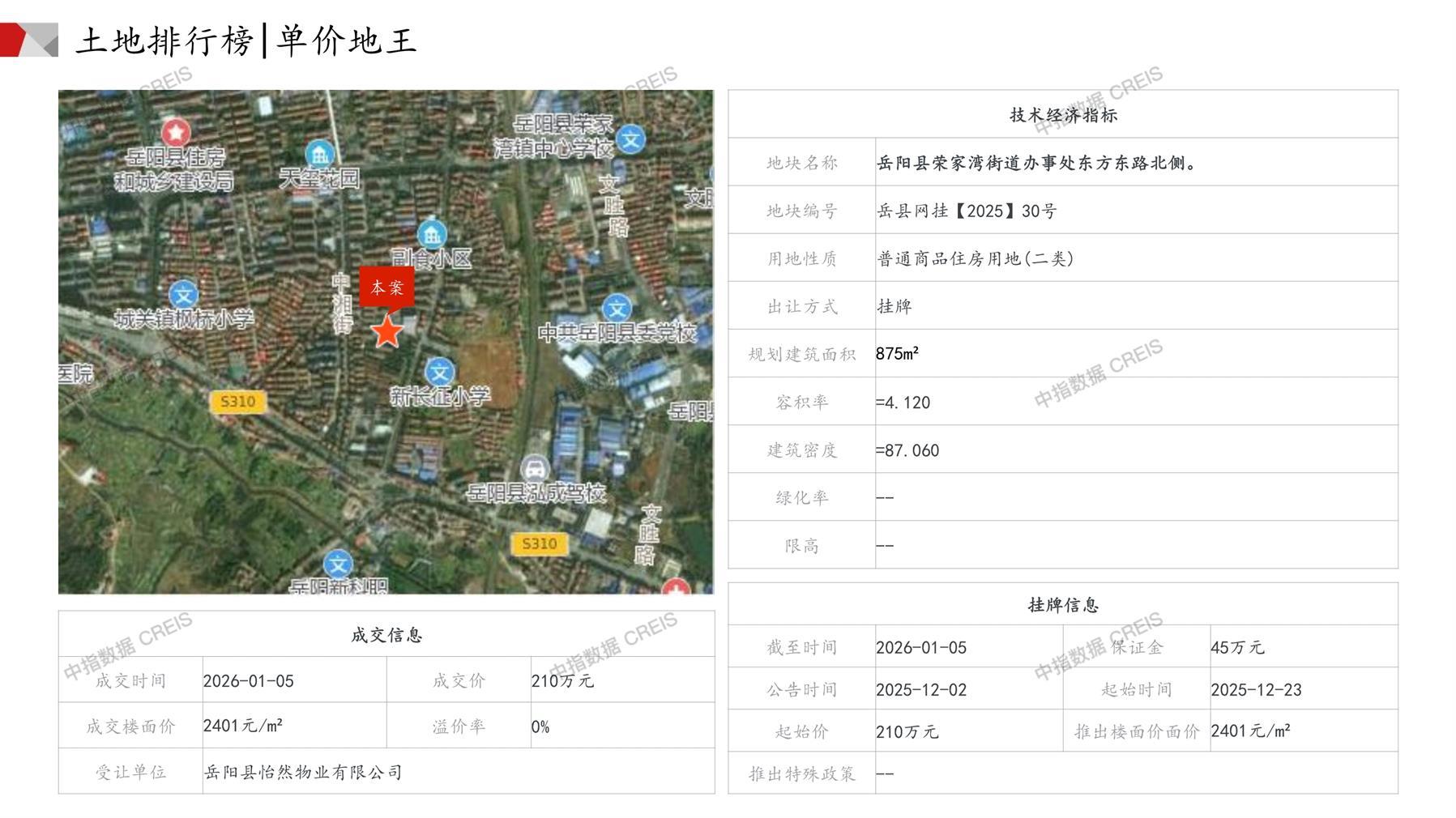 岳阳土地市场月报2026年01月-快报