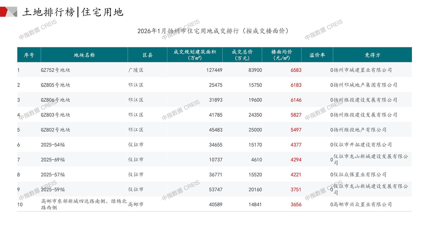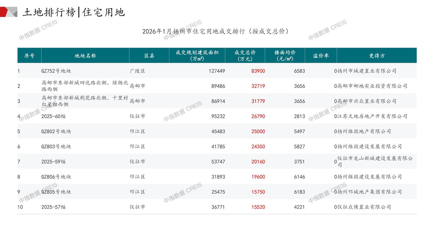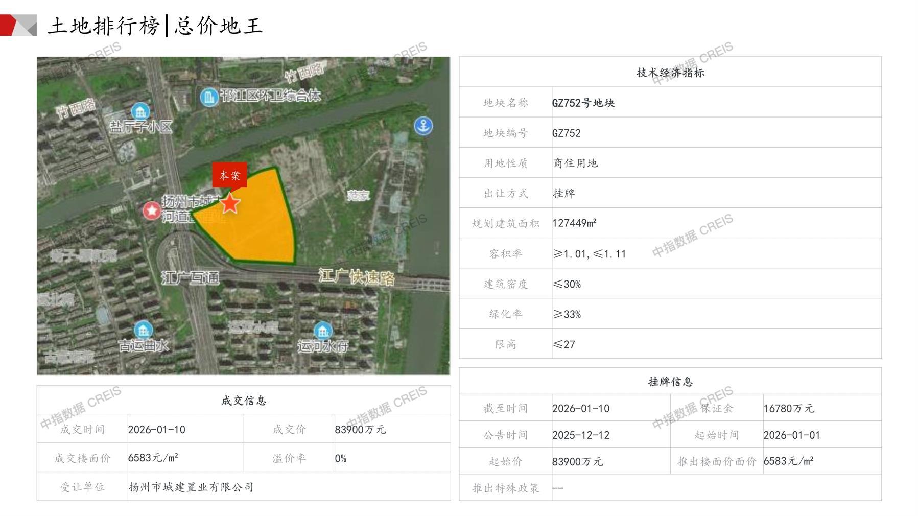 扬州土地市场月报2026年01月-快报