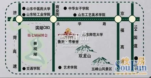 鲁商常春藤位于济南西部大学城的 区域。南依连绵群山,西 四千余亩的第七届中国国际园林花卉博览会及近1500余亩的景观湖,与大学城商业 区(CBD)及50万m2的产、学、研基地为邻,东临山东师范大学,北隔长清大道与中华女子学院相望。独有的山、水、谷天然景观和丰富的旅游资源以及人文景观情景交融,完美结合。K301路、K302路、20路、济南至长清1路公交、济南至长清2路公交、济长巴士(火车站)当地1路、22路、25路、20路到博雅路下车即到。