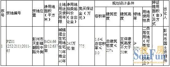 ËÑ·¿ÍøÑ¶ 9ÔÂ29ÈÕÉÏÎç10µã£¬³É¶¼ÊйúÍÁ¾ÖÒÔÔö¼Û·½Ê½ÅÄÂôÒ»·ùµØ¿éµÄ¹úÓн¨ÓõØÊ¹ÓÃȨ£¬³öÈÃÍÁµØÃæ»ý8424.66ƽ·½Ã×£¬Ô¼12.637Ķ£¬×ÚµØÎ»ÓÚÅíÖÝÊÐÌìÅíÕò³¯ÑôÖзÍâ²à£¬ÆðÅļÛΪ245ÍòÔª/Ķ¡£¾¹ý¶àÂÖ½ÇÖ𣬠ÖÕÓÉËÄ´¨±ÌÃÀ·¿µØ²úÒÔ425ÍòÔª/;ºµÃ£¬Òç¼Û73.47%¡£