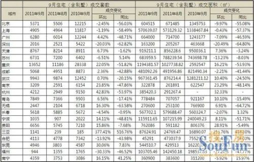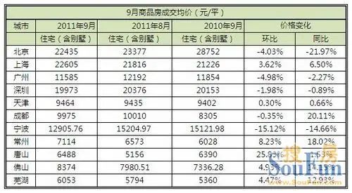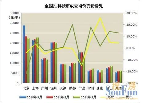 ¸ù¾Ý¶Ô±±¾©µÈ11¸ö³ÇÊеÄ9Ô³ɽ»¾ù¼ÛÈ«Ñù±¾µ÷²éÊý¾ÝÏÔʾ£¬Ò»Ïß³ÇÊм۸ñËɶ¯Ã÷ÏÔ£¬³É½»¾ù¼Û»·±ÈÆÕ±éϵø£¬ÆäÖÐÉîÛÚµø·ù £¬»·±Èµø·ù4.98%£¬ÉϺ£³É½»¾ù¼Û»·±ÈÔòÉÏÕÇ3.62%£¬Í¬±ÈÕÇ·ù6.5%¡£