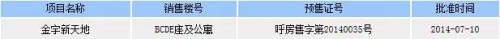 预售证号: 呼房售字第20140035号
