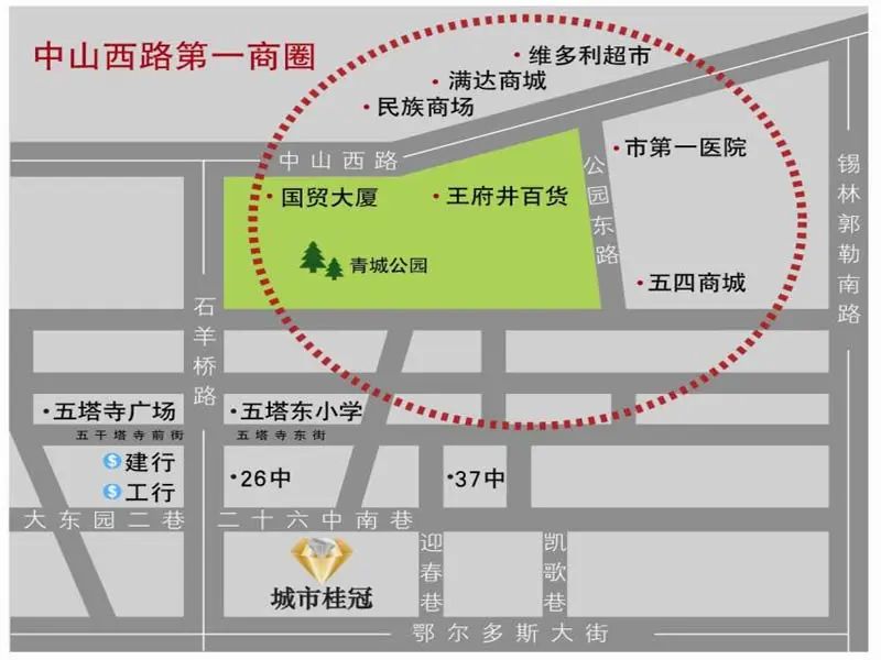 学校:黑马幼儿园、希望星幼儿园、五塔东小学、石东路小学、贝尔路小学、二十六中、十八中、师大附中、内蒙古大学、师范大学、内蒙古农业大学