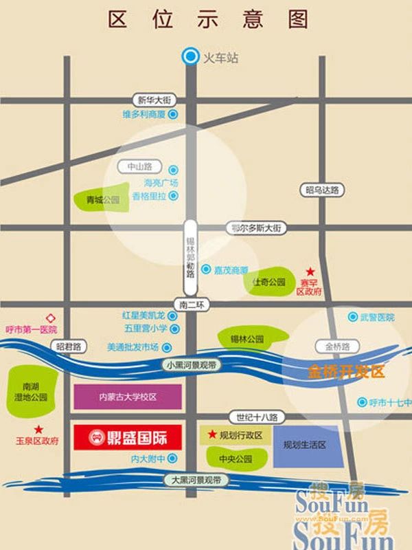 顺应首府城市南拓大势,锡林南路再添胜景,鼎盛国际耀世而出。紧邻内蒙古学府,周边公园、景观带环绕。以60万平米的恢宏手笔,打造一个集合高端住宅、购物中心、商业街、5A级写字楼于一体的高端城市综合体。