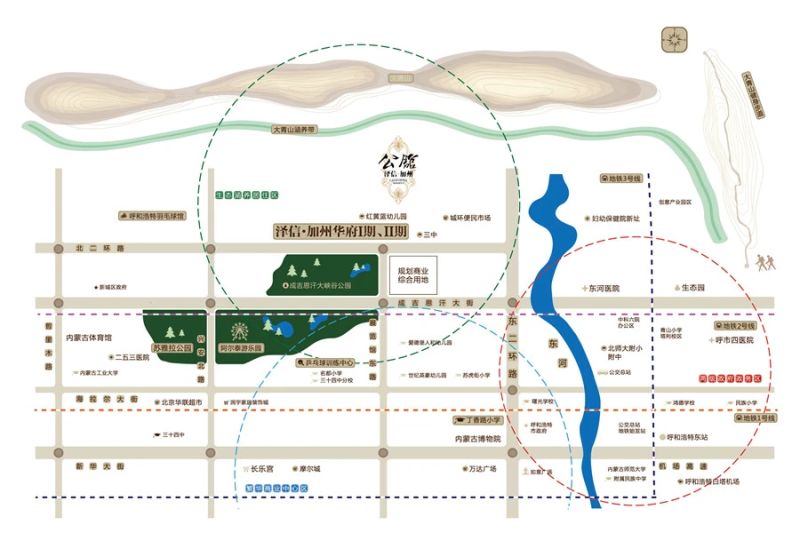 地理位置:新城东二环北端与丁香路交汇处(呼市三中旁)。