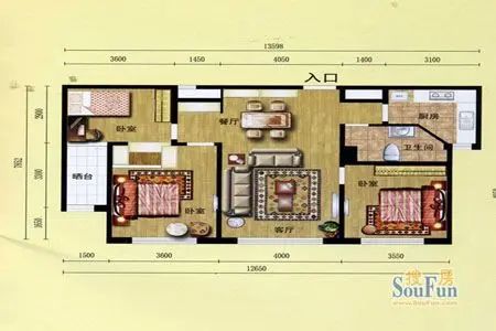 (维多利迎宾华庭三室两厅一明卫一厨 约113.8平米)