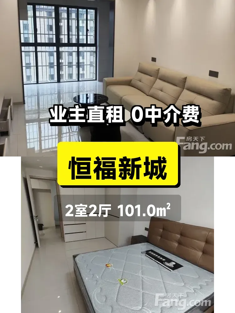 标题:自家恒福新城两居室出租✨南北通透高层景观房