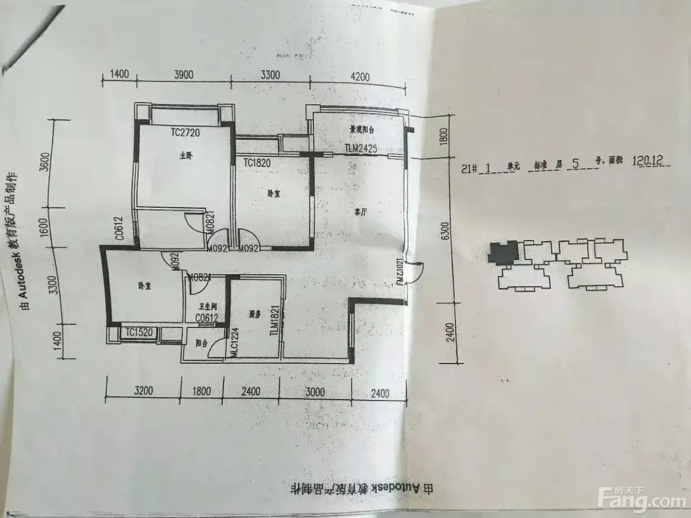 户型是3室2厅2卫,西朝向