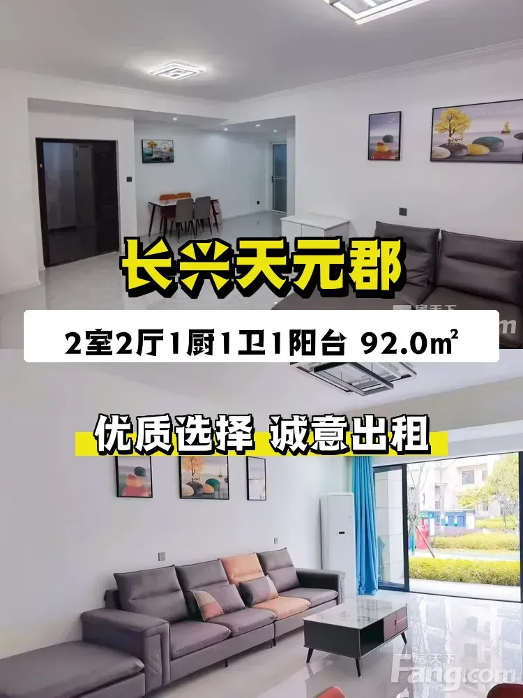 终于决定把自家这套长兴天元郡的房子租出去啦!✨ 92平米的精装两居室,南北通透的阳光房,一楼还带独立阳台,推门就是花园大道的绿意,住着超级舒心~