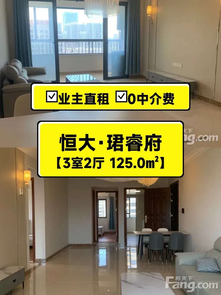 标题:自家恒大珺睿府三房首次出租✨南北通透125平仅2200