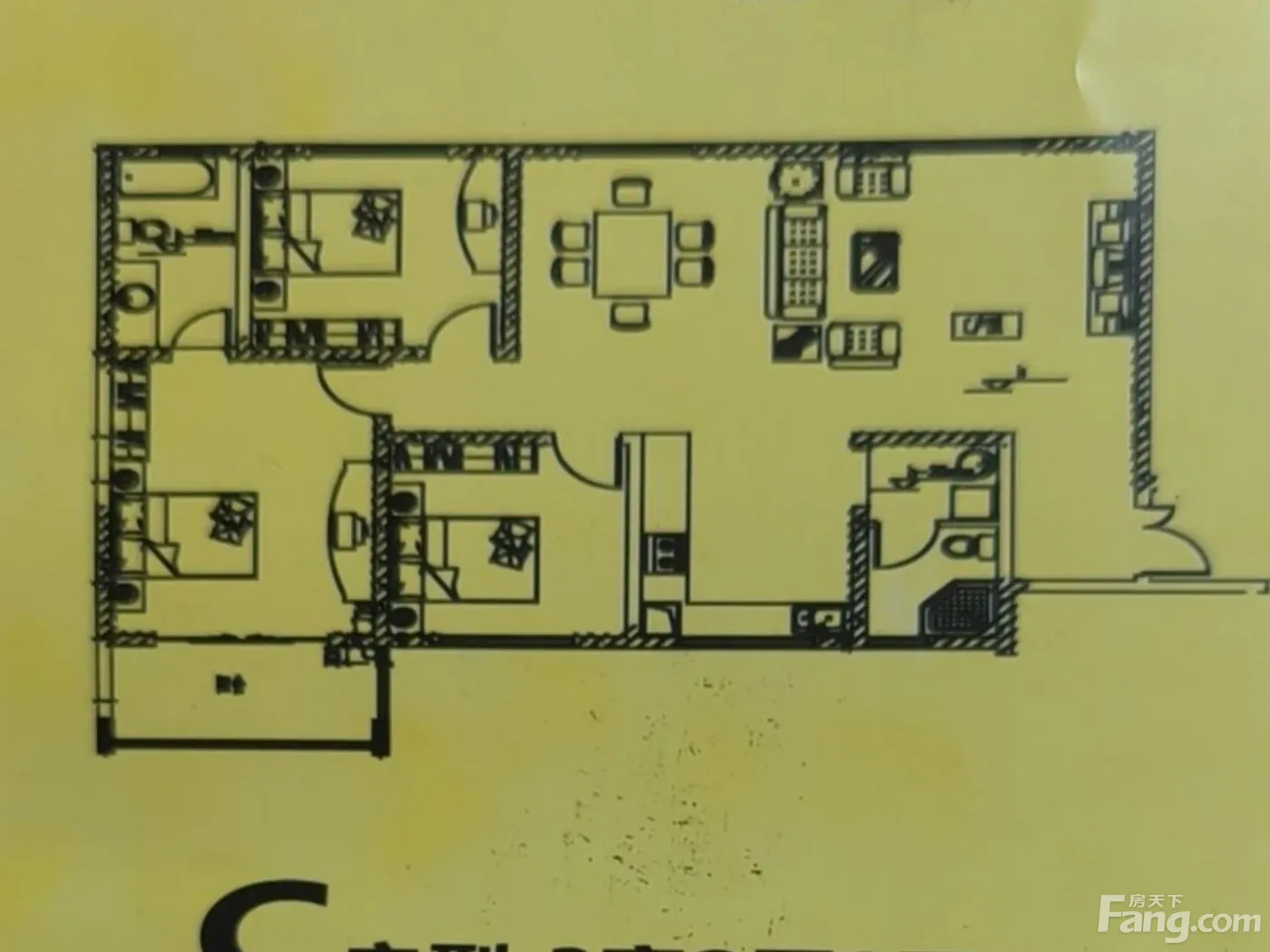户型是3室2厅2卫,南朝向