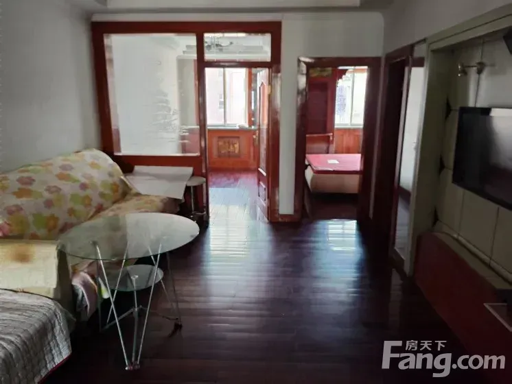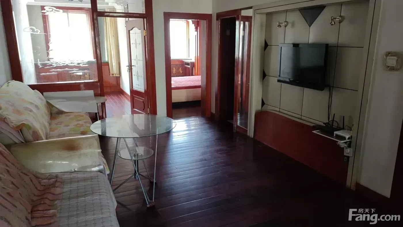 实木地板,简单装修,沙发,大床,电视,抽油烟机,已接入天燃气管道,两个卧室都在阳面。