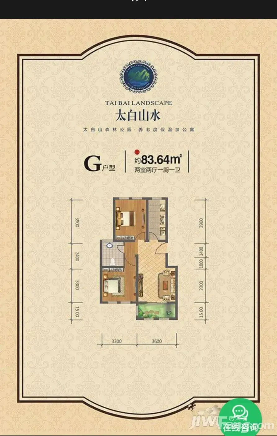 太白山景区入口处,龙山凤水,楼下就是太白之眼喷泉,两室一厅一卫,南北通透,电梯房,楼层好,毛坯,产权清晰明确。