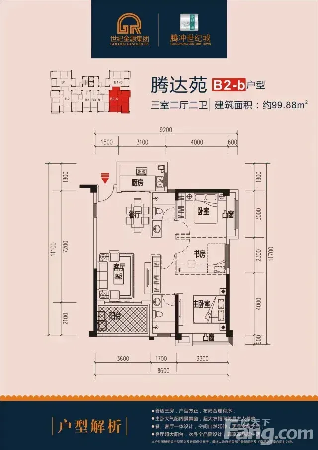 保山 世纪城腾达苑东南朝向 3室2厅 102.19㎡ 62万
