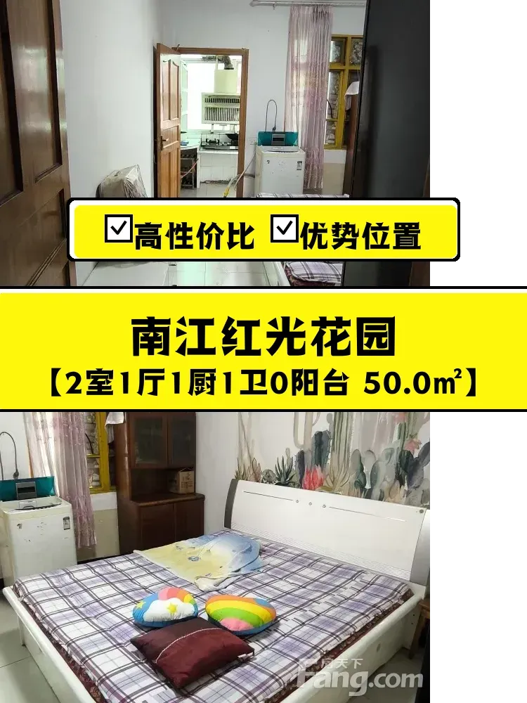 最近想把自家这套南江红光花园的房子租出去,真心觉得挺适合想要在南江县找房的小伙伴!我家房子在5楼(总高8层),50平米的2室1厅,虽然不大但格局特别合理,南北通透的设计让屋里全天都亮堂堂的,阳光洒进来超舒服~