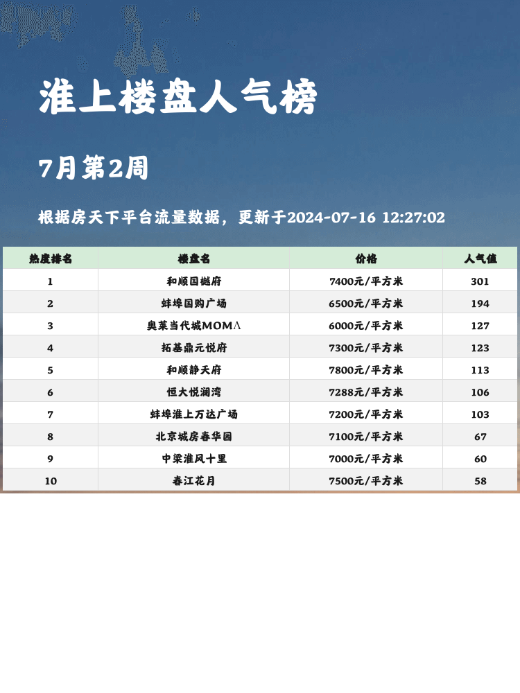 ✨以上就是淮上区域人气楼盘榜单的前三名,希望能够为大家的购房决策提供一些帮助。快来寻找属于你的理想家园吧!🏡💖