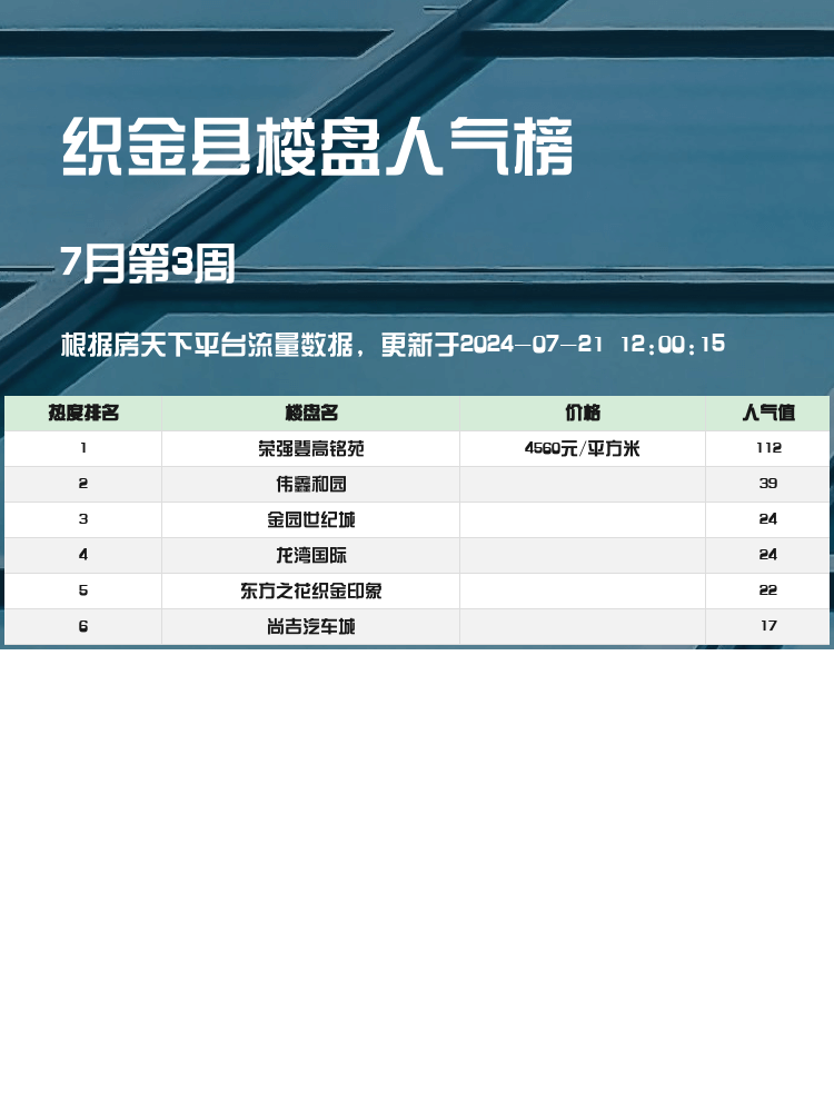 在如今的房地产市场中,如何选到合适的房子是每个购房者最关心的问题。📈人气楼盘榜单📉不仅能帮助你快速了解市场热点,还能为你提供更多实用信息,帮助你做出更明智的选择。接下来,就让我们一起来看看织金县的🏠人气楼盘榜单🏠吧!