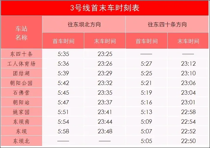 🧧 地铁3号线一期(东四十条—东坝北)、
