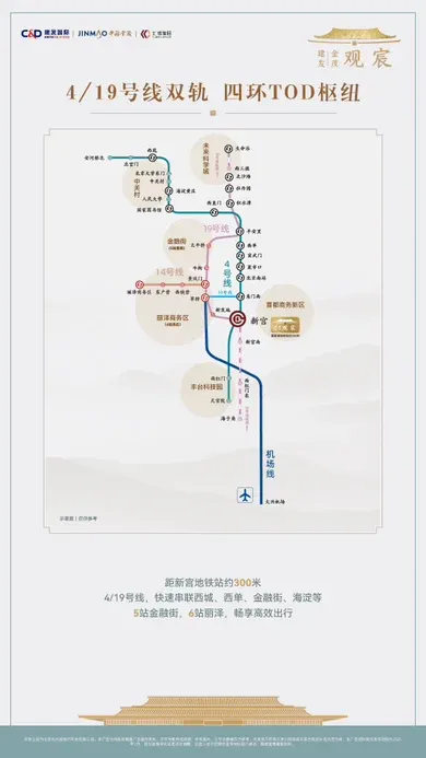 地铁4&19号线加持,5站直达金融街,6站速抵丽泽商务区,都会繁华举步即享。