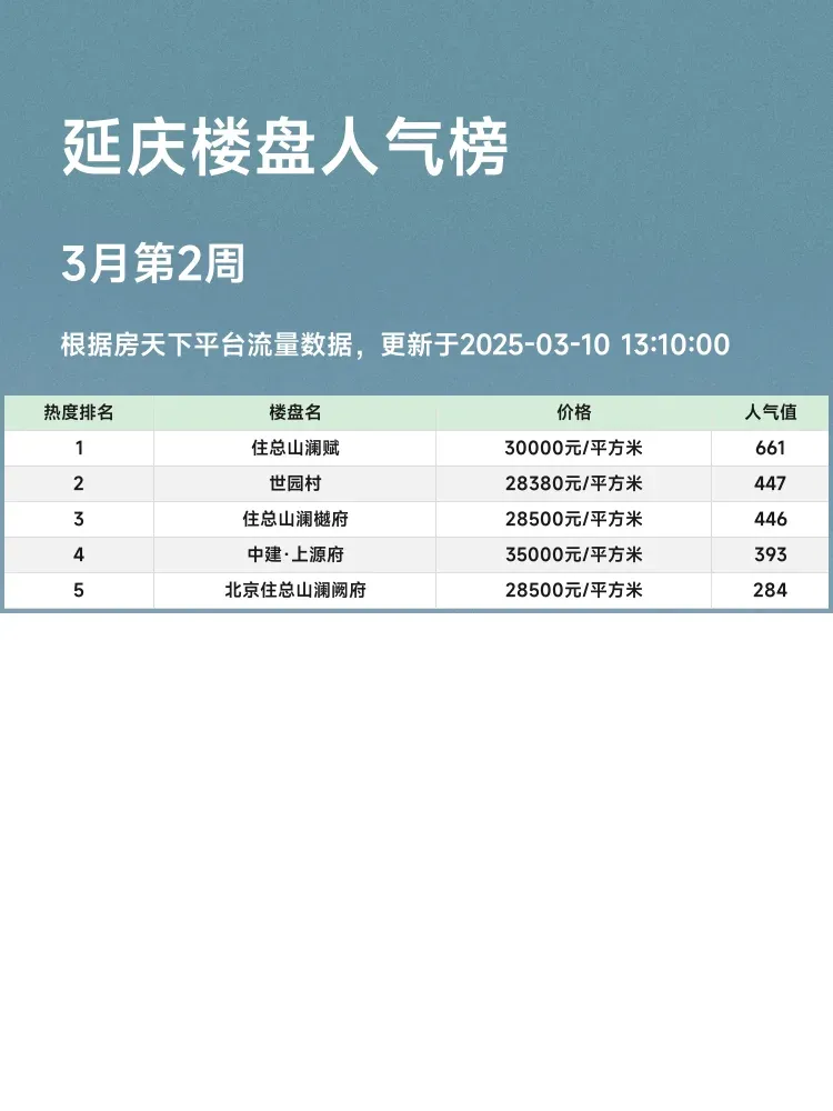 这份榜单帮你快速了解延庆热门楼盘,选房不迷茫!💡