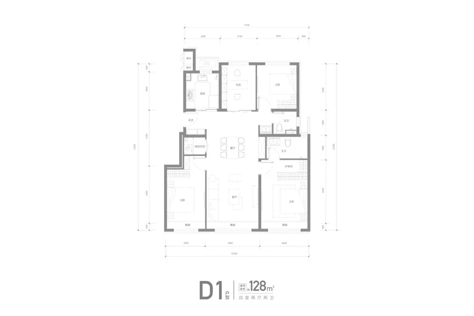 128㎡的三室两厅两卫设计,太适合家庭居住啦。