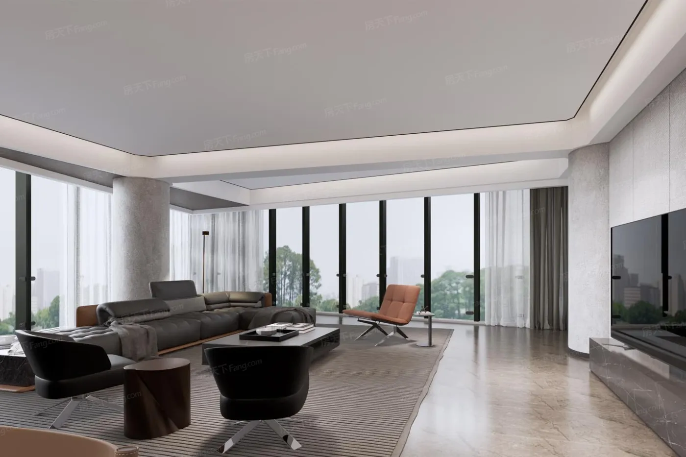这个被双公园环抱的小区,263㎡户型居然做到四室四卫!主卧套房堪比五星级酒店,双台盆+独立浴缸的配置,让加班晚归的洗漱都变成享受。最喜欢书房那面落地窗,工作累了抬眼就是公园树冠组成的"生态幕墙"。