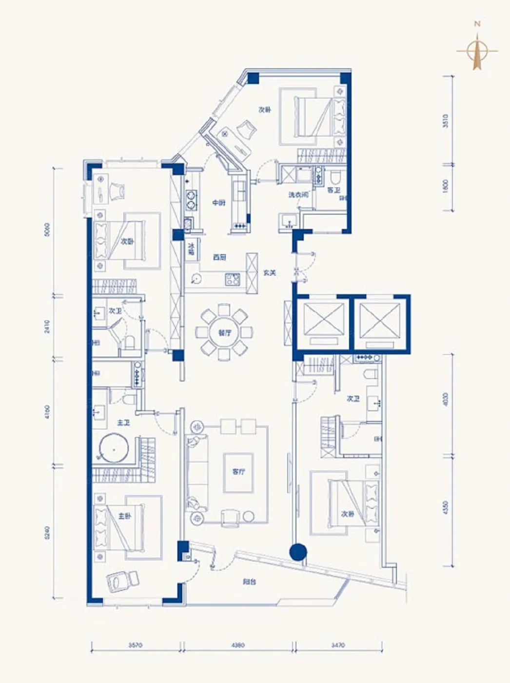 上周陪朋友看房,直接被这个238㎡的大平层惊艳到!4室2厅的格局把空间玩出花: