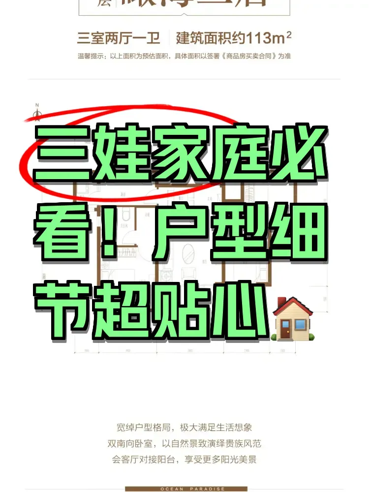 带着三个神兽看房5年,终于找到理想户型!113㎡三居室居然有双卫生间,早上再也不用排队洗漱了!重点表扬这个U型厨房,转身就能拿到调料,做辅食效率翻倍🍳