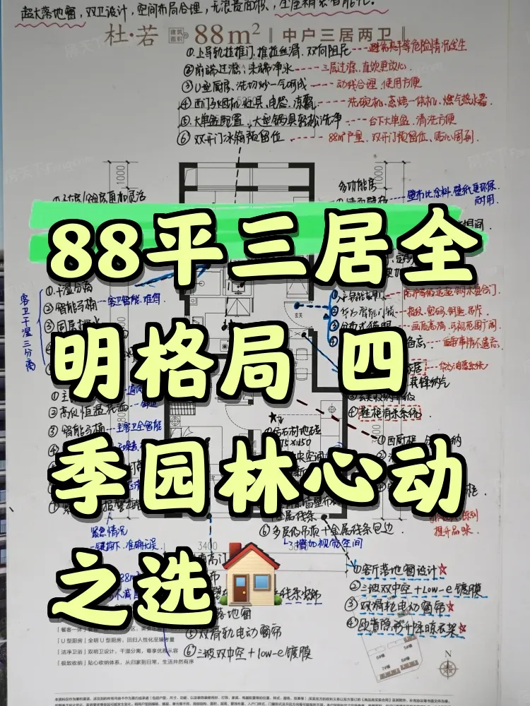 最近陪朋友看房,本来想当个专业挑刺王,结果被这个项目整破防了!88平三居居然能做出全明格局,每个房间都有阳光直射你敢信?