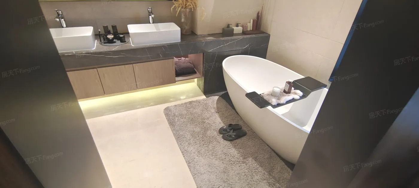旋转坡道像美术馆一样贯穿两层,8米1的挑高让整个空间通透到不行。最绝的是墙面地面全用微水泥,灰调质感高级到爆!不同层次的灯光把空间线条勾勒得特别有层次,站在中间感觉像在艺术馆看展。