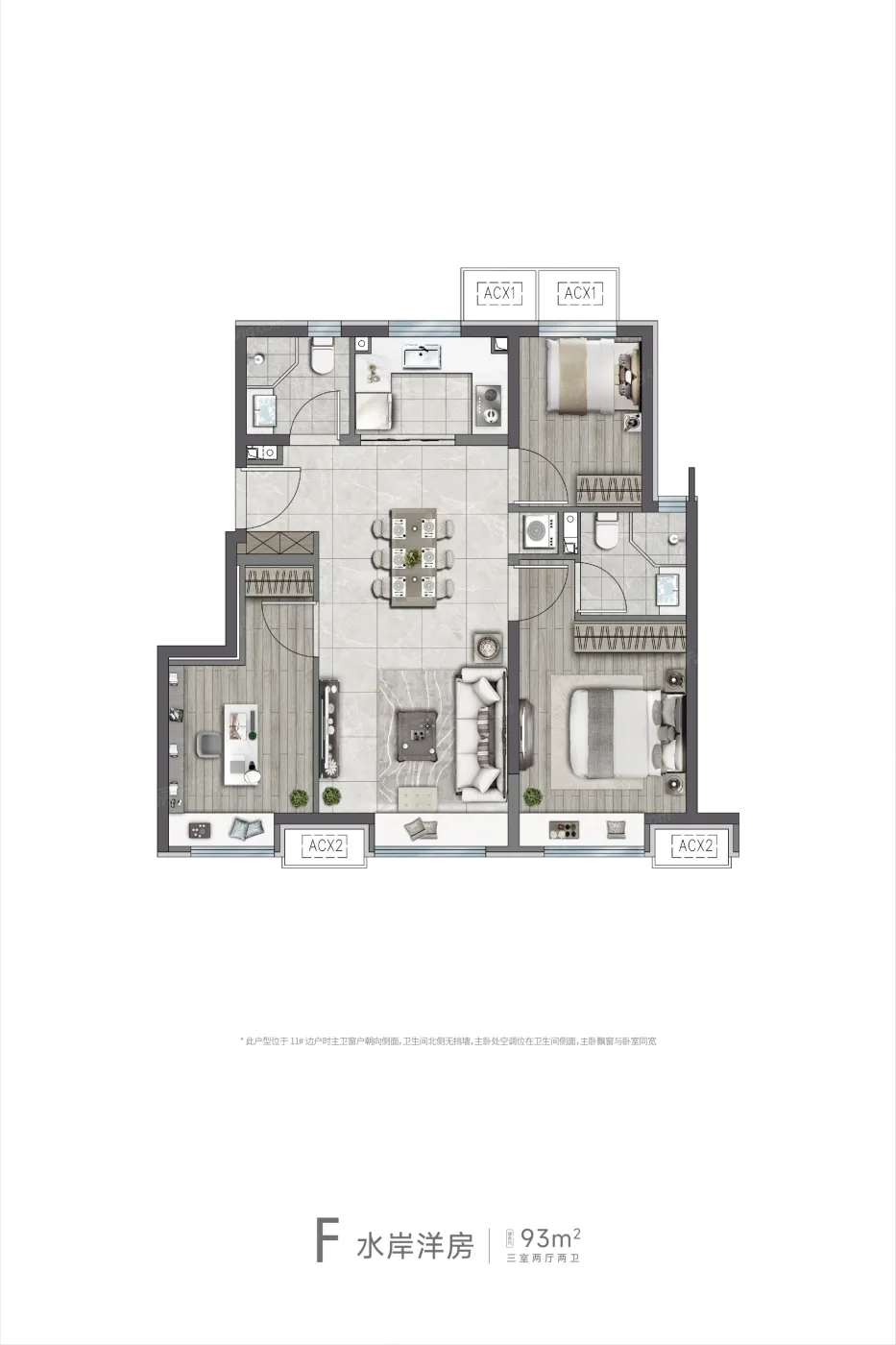 1️⃣ 户型面积73㎡起,主推的93㎡三房却要做成双卫,次卧空间被压缩到怀疑人生