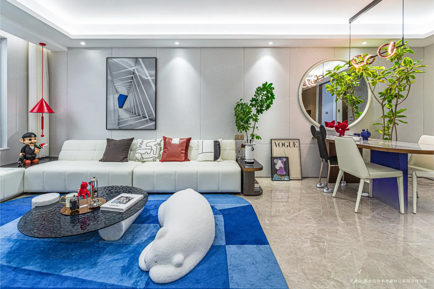 3️⃣ 样板间墙面用了特殊涂料增亮,自然光照进普通层高户型可能显压抑