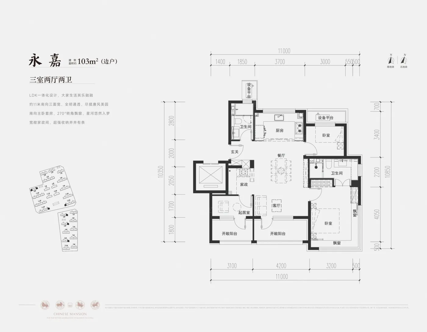 1. 飘窗实得面积1.5㎡全赠送