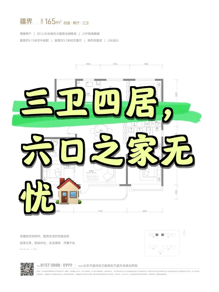 最惊艳的是中西双厨+餐岛一体化设计,6口人吃饭完全不挤!不过要提醒多孩家庭:北向庭院冬季挡风效果存疑,建议加装折叠玻璃门。实测小区到人大附通州校区1.5公里,但对口政策还没定,有学龄儿童的建议多核实。