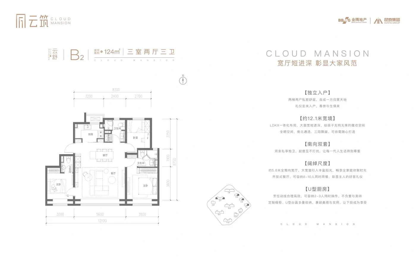 户型设计有很多反套路操作:卫生间居然带观景窗?原来开发商把通风井做成了采光天井。最绝的是主卧的"双动线"设计,晚上起夜可以直接从衣帽间进卫生间,完全不会吵醒另一半。建议看看124㎡那个三居户型,三开间朝南+U型厨房,简直是烘焙爱好者的梦中情房。