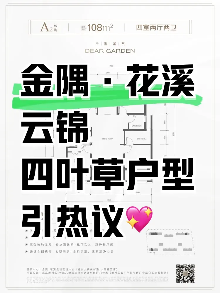 上周陪朋友看房,在金隅·花溪云锦样板间看到108㎡四室两卫户型时,我整个人都懵了——四个独立房间居然像四叶草一样散落在四个角落!开发商说这叫全明布局,但每个房间门都对着客厅,半夜上厕所真的不会尴尬吗?更离谱的是主卧那个270°转角阳台,站在上面感觉能直接和邻居家对视,说好的隐私性呢?不过北向次卧的侧边飘窗倒是挺有意思,坐在上面看书有种悬浮感,就是不知道冬天会不会冻屁股...
