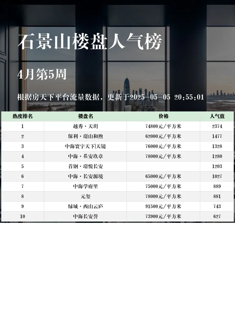 买房盯榜单真的能省心50%!🏆 当前市场下,交通+教育+户型成为购房三大刚需,石景山作为京西改善热门区域,这份实测榜单帮你快速锁定优质盘~