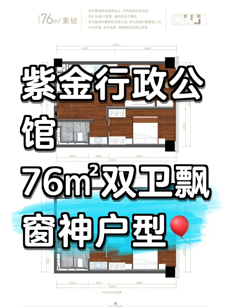 上周末陪闺蜜看房直接破防了!她预算300w想买西红门两居,中介带看的老破小不是没电梯就是暗卫。转折出现在走进紫金行政公馆样板间那一刻——76㎡户型居然能做双卫双飘窗!