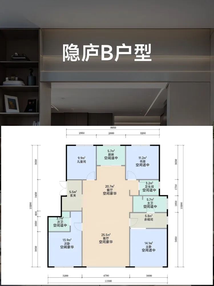 🎯真正的动静分离王者,将4个卧室集中布置在静区,深夜加班回家零打扰💤