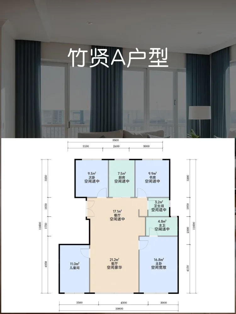 🌪️南向面宽达7.2米!主卧次卧双飘窗+客厅全景落地窗,阳光覆盖率吊打同面积段竞品🔆