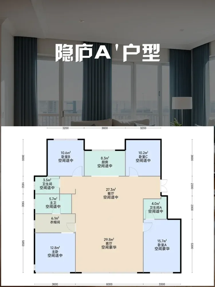 🌪️三卫设计+双套房配置,二胎家庭和老人同住都能保持隐私,半夜上厕所不再抢🚽