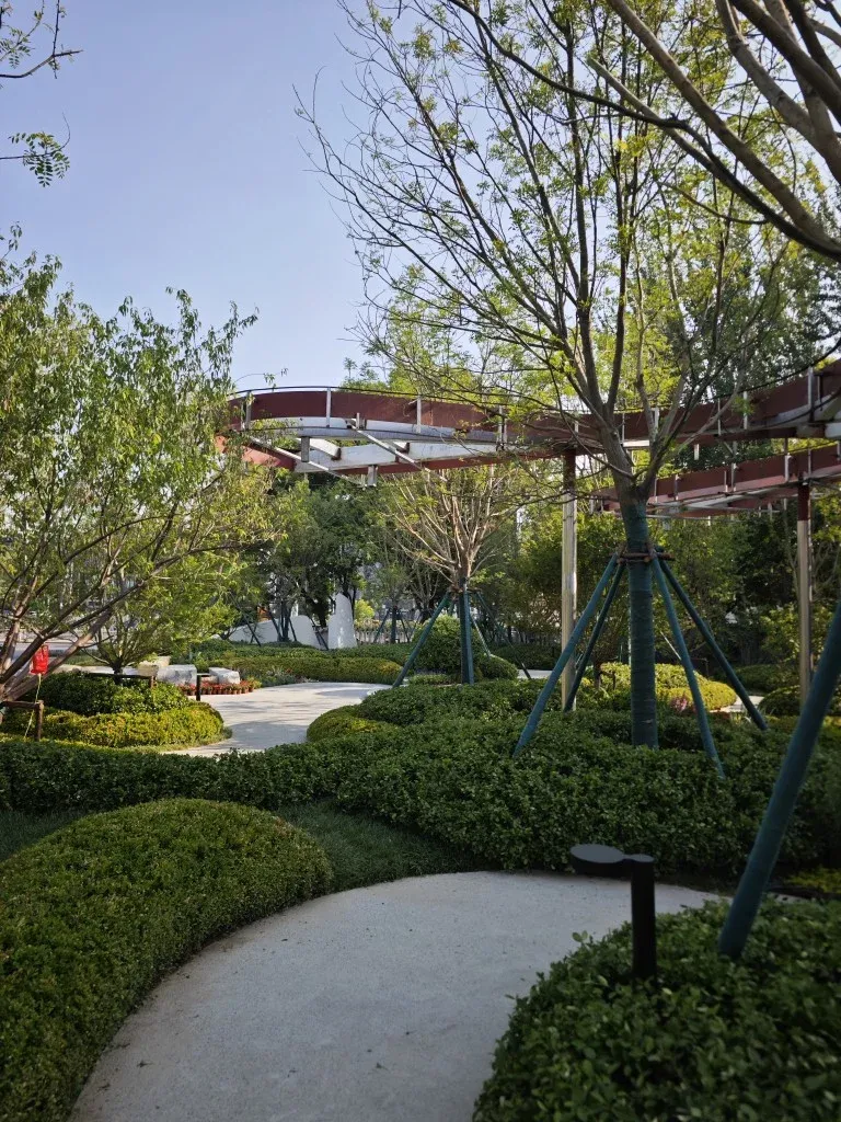 谁说城市里没有诗与远方?丽泽叁号院直接把1.2万㎡生态秘境搬到家门口!下楼即达的斑斓花园,樱花步道、银杏林、艺术花境层层铺展,四季都有不同浪漫。晨间慢跑穿过薄雾笼罩的绿植长廊,傍晚带娃在儿童乐园撒欢,周末约上好友在林下草坪野餐…这里不是景区,是你的日常!七轨地铁口的繁华与自然仅一步之遥,这样的神仙绿化,确定不心动? 🌳🌸