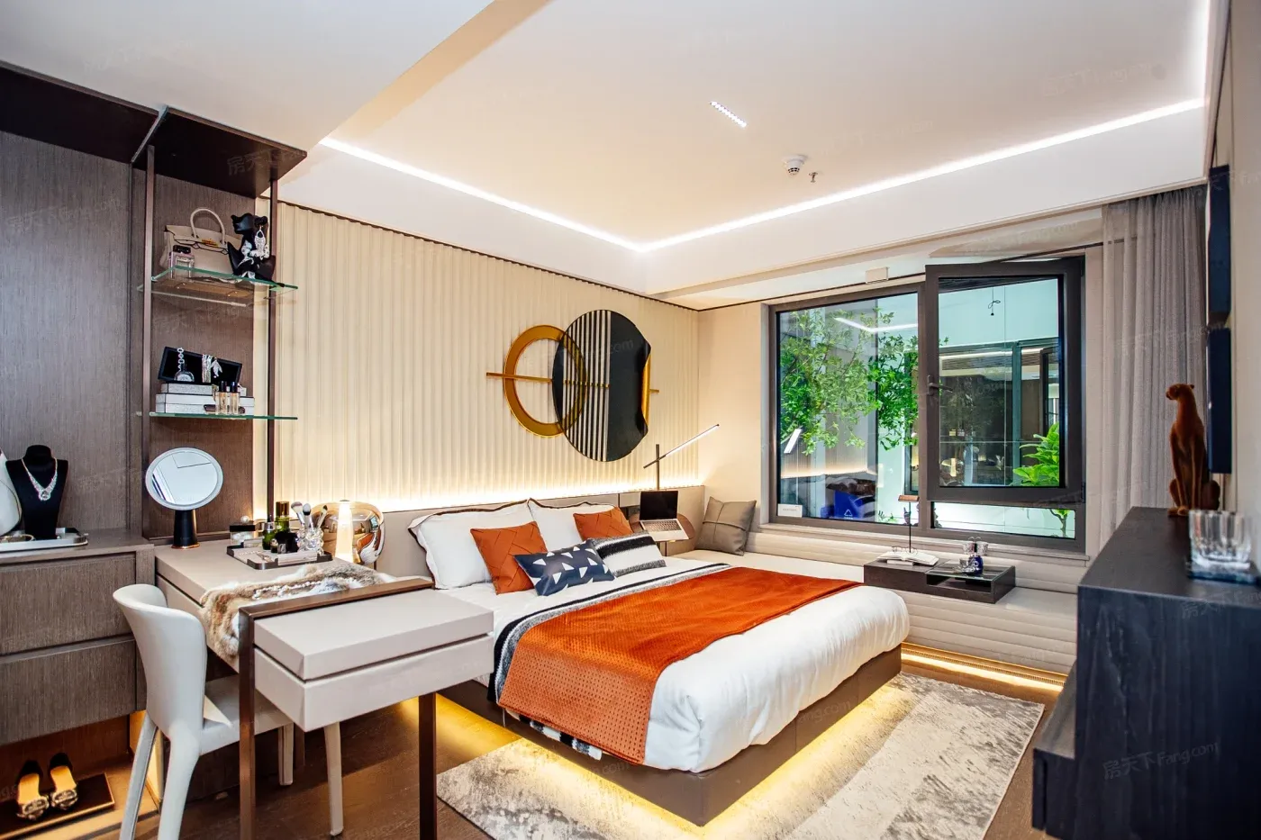 项目设计团队分享了个冷知识:所有飘窗都预留了暗装插座轨道。这意味着不用走明线就能安装电动升降书桌,凌晨加班的打工人再也不用摸黑找台灯。