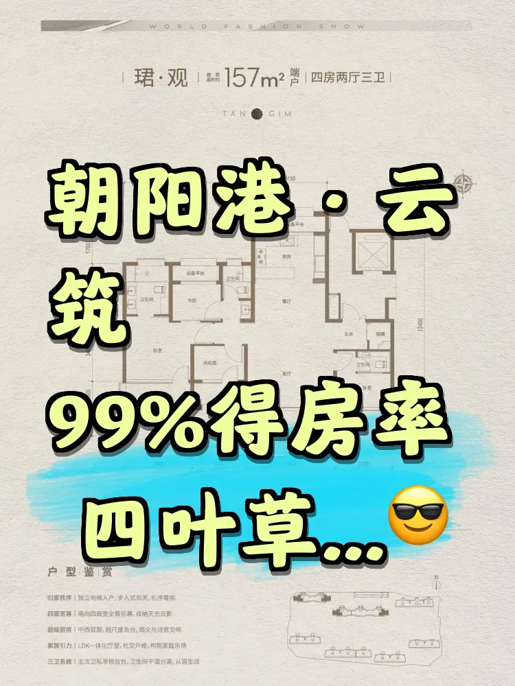 当多数楼盘还在为公摊面积找补时,朝阳这个项目直接把窗户整体外移20cm,硬核实现99%得房率!实测157㎡四居室,竟能塞下5.5米宽厅+双套房+中西双厨🤯