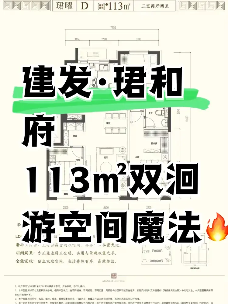 1️⃣ 113㎡户型竟藏「双洄游动线」:玄关柜背后藏着家政间,回家-更衣-洗衣动线比海淀80㎡次新还流畅