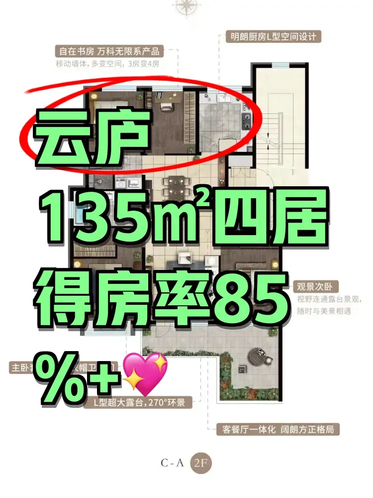 万科这套135㎡四居最打动我的是动静分区的巧思。南向双卧自带飘窗,老人房与儿童房用L型走廊自然区隔。北侧餐厨区与书房形成「生活岛」,主卧套房藏在东侧尽端。这种布局让闺蜜家两代人的作息完全互不干扰。
